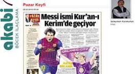 صحيفة تركية تزعم أن اسم "ميسي" مذكور بالقرآن ؟!! ادعت صحيفة" ميلاد" الموالية للحكومة التركية أن نجم المنتخب الأرجنتيني ليونيل ميسي Messi ورد في القرآن الكريم ولهذا السبب فإنه يتغلب على كل من يواجهه.
