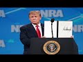 دونالد ترامب يعلن انسحاب بلاده من المعاهدة الدولية للأسلحة ... ترامب خلال الاجتماع السنوي للرابطة الوطنية الأمريكية للسلاح أن الولايات المتحدة ستنسحب من المعاهدة الدولية للأسلحة التي وقعها سلفه باراك أوباما عام 2013.