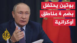 بوتين يوقع مرسومين بشأن الاعتراف بـ"استقلال"منطقتي خيرسون وزابورجيا المحتلتين وقع الرئيس الروسي فلاديمير بوتين، يوم الخميس، مرسومين بشأن الاعتراف بـ"استقلال" منطقتي خيرسون وزابورجيا المحتلتين.
