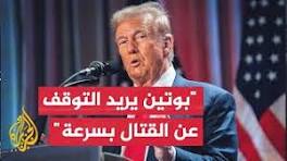 ترمب: أعتقد أن بوتين يريد التوقف عن القتال بسرعة كما أن زيلنسكي هو الآخر يرغب في ذلك قال الرئيس الأمريكي دونالد ترمب إن نظيره الروسي فلاديمير بوتين يرغب في انتهاء الحرب في أوكرانيا بشكل سريع وانه سيلتقي به قريبا جدا.