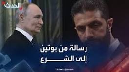 | بوتين يوجه رسالة إلى الشرع "لدعم استقرار" سوريا - الحرة أعلن المتحدث باسم الكرملين، دميتري بيسكوف، الخميس، أن الرئيس الروسي فلاديمير بوتين أرسل رسالة إلى الرئيس السوري الانتقالي، أحمد الشرع، أكد فيها ...